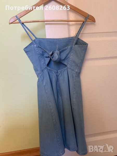 Роклята е от много лека материя и е обличана само два пъти. Гърбът и е изрязан и има цип и панделка. Размер ХС (24), дължина 64см, талия 28см. Марка Bershka.