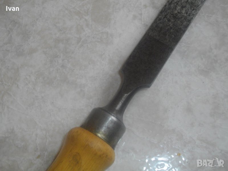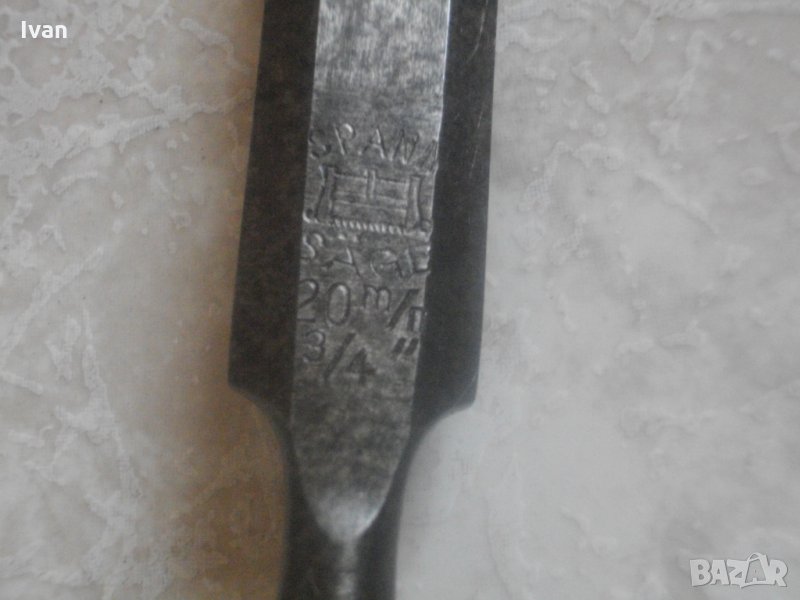 Ново немско професионално дърдоделско длето, право. раземр 20 мм-3/4 цол.Маркировки по длетото- SPANN SAGE 20mm-3/4. Марка ULMIA.Състояние - ново, неизползвано. Цялостна дължина - 290 мм, работна дължина - 120 мм, ширан - 20 мм, наклон на острието - 10 мм от трите страни.Метални пристягащи пръстени на дръжката горе и долу. Дръжка -дрян, лакирана. Наличие на самозалепващ стикер на произовдителя SPANN SAGE, и лого на маркировката на производителя.