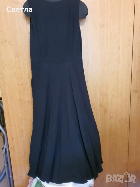 Роклята е с подплата, вталена, а надолу се разкроява, пада тежко и много елегантно. На гърба има цип и V - образно деколте, европейски размер 38, тоест М, дължина - миди, под коляното, до средата на прасеца, от вискоза. Почти нова, никакви следи от употреба, продавам я, защото качих размера и не ми става.