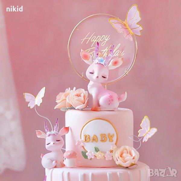 Happy Birthday с метална основа прозрачен пластмасов топер табела украса за торта рожден ден → Обява 33512195