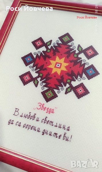 Изработвам ръчно бродирани български шевици, в рамка със защитно стъкло, за окачане на стена, 21/21 sm. Цената на една шевица с рамка е 80 лв. Всяка е с различен символ и значение. За дома, за семейството, за подарък! Пишете тук или на Фейсбук на л.с. Роси Йовчева Ямбол.