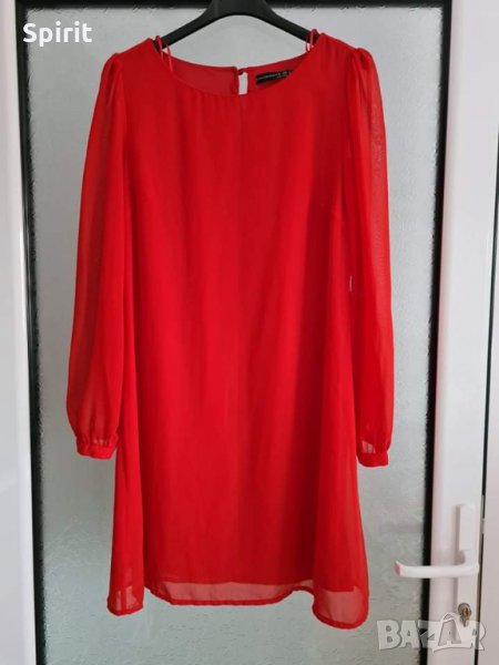 Червена рокля шифон,непрозрачна,с подплата отдолу.