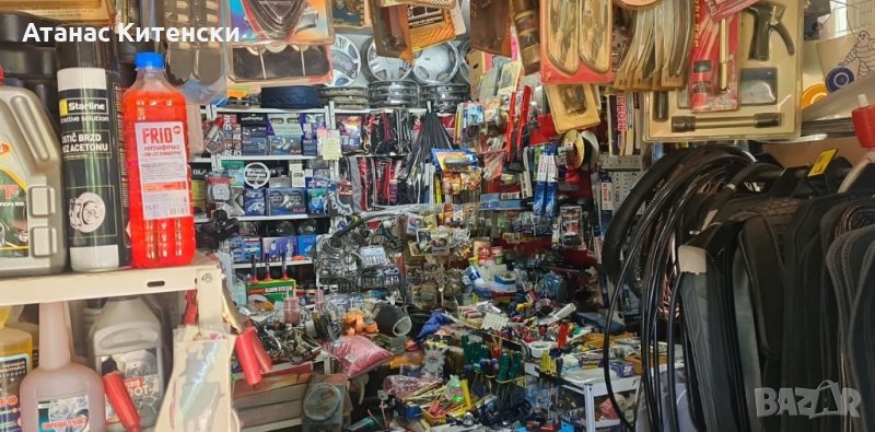 Продава се всичко на куп, заедно с оборудването-стилажи, бюра, витрини, кукички. Има над 5000 артикула с дълги позиции.