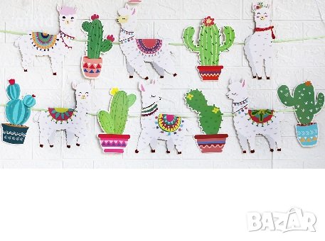 Лама Кактус голям Парти Гирлянд Флаг Банер → Обява 33523095