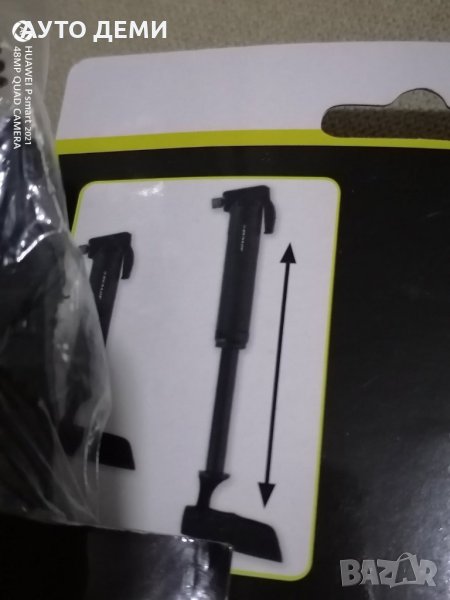 Помпата е малка и компактна и с нея има в комплект предсавки за помпане на гуми .