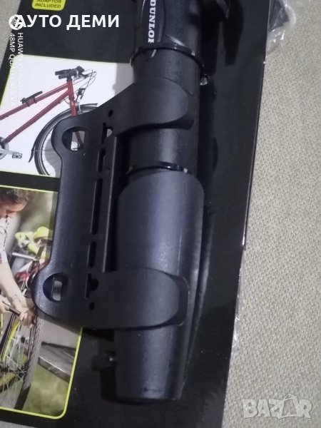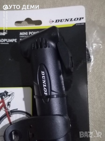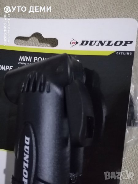 Цена за 1 брой чисто черна мини ръчна помпа марка Dunlop с 1 представка за гуми - 12.70 лв .