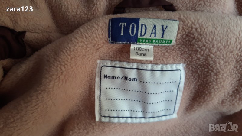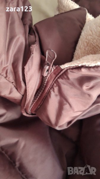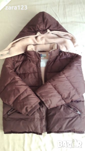 Дебело пухено яке Vertbaudet, цветът е патладжанено кафяво, отвътре полара е бледо розов. Качулката се сваля, без забележки.