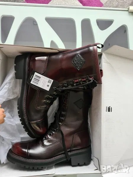 За София предпочитам лично предаване! Намалени от 280лв на 250лв. Дамски боти тип кубинка цвят черен с червен отенък, номер 37, естествена кожа, стелка 23,5см, нови с кутия и етикети, купени есента за много повече. Само лично предаване!