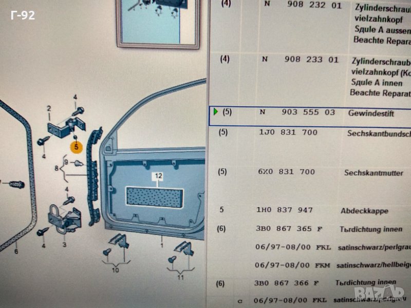 N90355503**NEU**VAG**Монтажен Болт за Панта на врата**