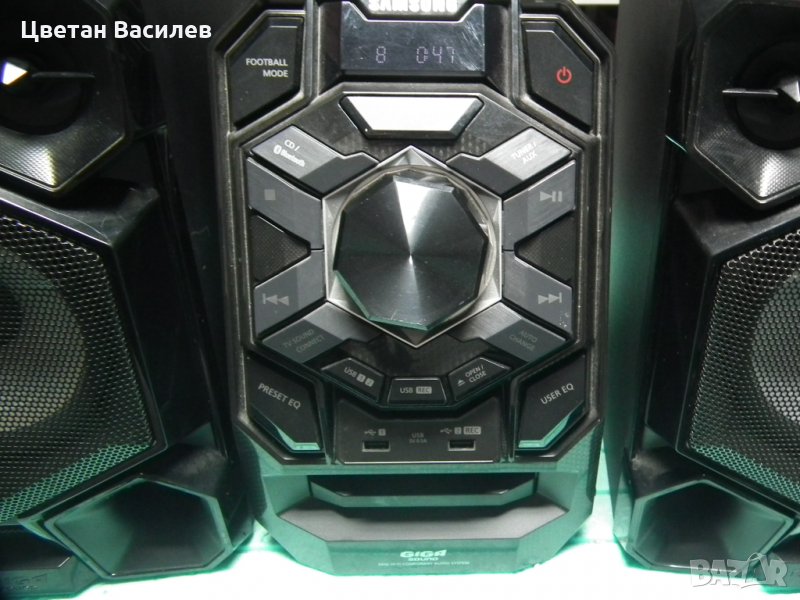Samsung MX-J730. Тип: Домашна микро аудио система, Цвят на продукта: Черен, Брой оптични дискове: 1 дискове. RMS мощност: 300 W, Пикова звукова мощност (PMPO): 6600 W. Поддържани радио вълни: FM. Поддържани звукови формати: MP3,WMA, Поддържани видове дискове: CD,CD-DA,CD-R,CD-RW, Запис на: USB. Захранване: Променлив ток (AC), Консумация на енергия (стандартно): 85 W, Консумирана мощност (в готовност): 0,45 W