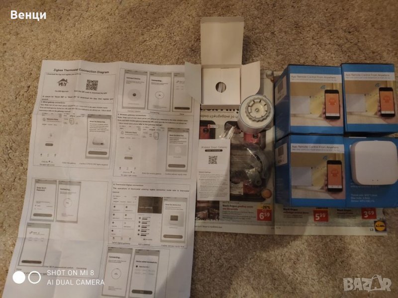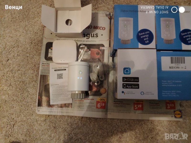 Предлагам чисто нов кит за автоматизирано управление на радиатори,чрез Zegbee базирани термоглави комуникиращи си с getaway hub.Управлението на всеки Термо вентил се осъществява през фирменото приложение от Google Play store. Вентилите и hub са чисто нови.Интелигентен термостат за задвижване на радиатора Tuya ZigBee: Нов мини дизайн с опростен и ясен LCD дисплей на корпуса, радиаторният термостат е с LCD цифров дисплей и две секции на батерии тип АА (батерията не е включена), което е специален клапан, използващ съвместно с отоплителния радиатор. Изкуствено зададена вътрешна температура, използвана главно в системата за подово отопление за управление на затварянето и отварянето на тръбата.