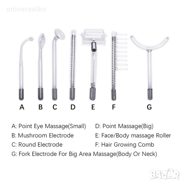 Дарсонвал със 7 приставки с неонов и аргонов газ