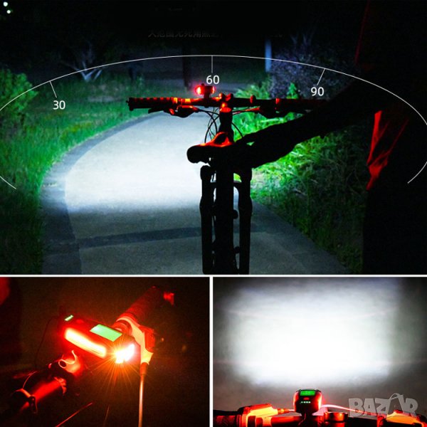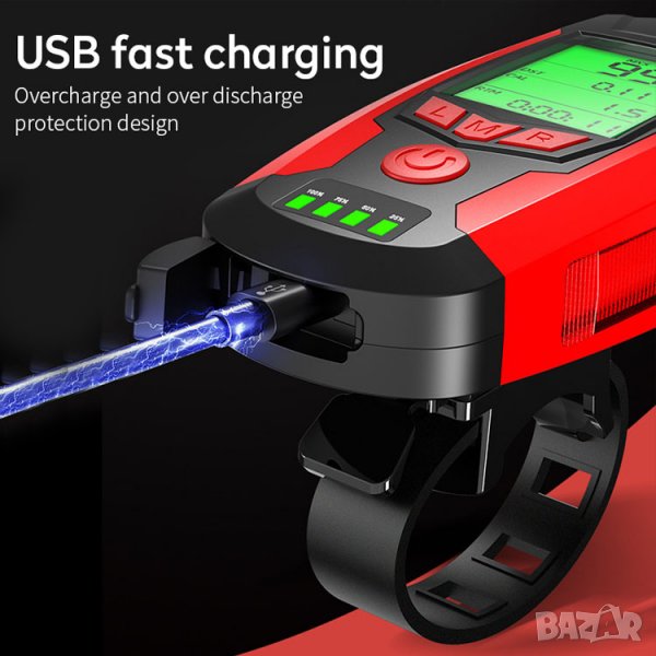 5в1 Фар за колело, фар за велосипед, аларма, презареждаем фар компютър,сирена,километраж клаксон
