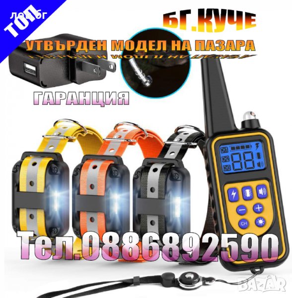 дресировъчен нашийник Модел 2022 година Допълнително модифициран, водоустойчив с презареждащи литиево йонни батерии на нашийника и дистанционното. Светещ дисплей улесняващ командите нощно време.