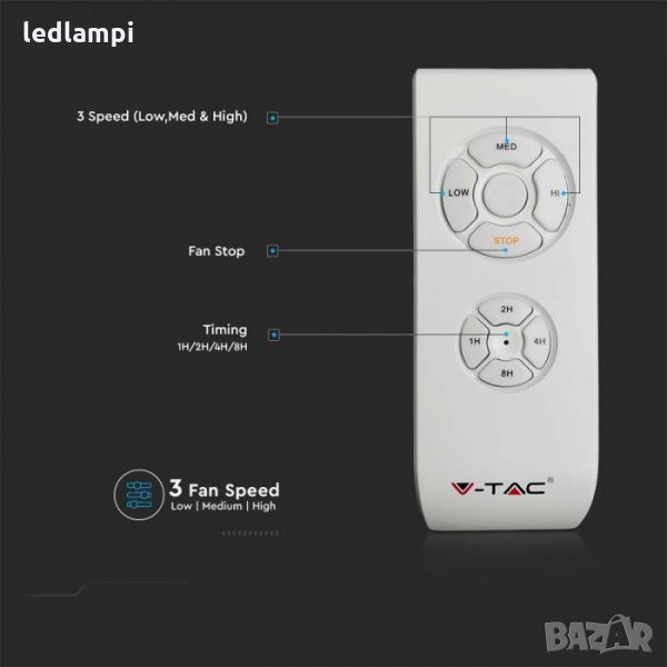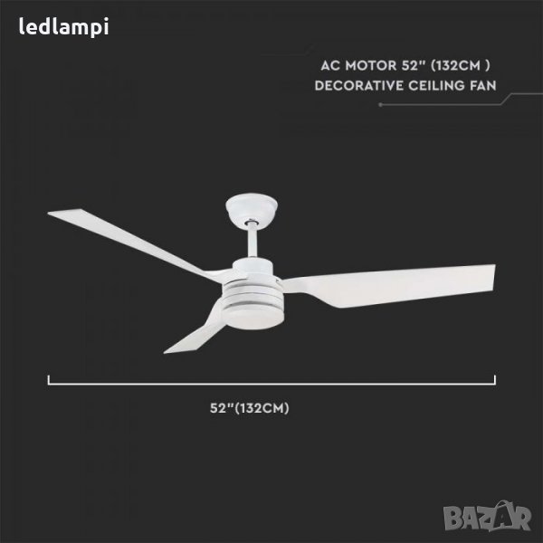 - Декоративен таванен вентилатор 65W, 52 инча (132 см)