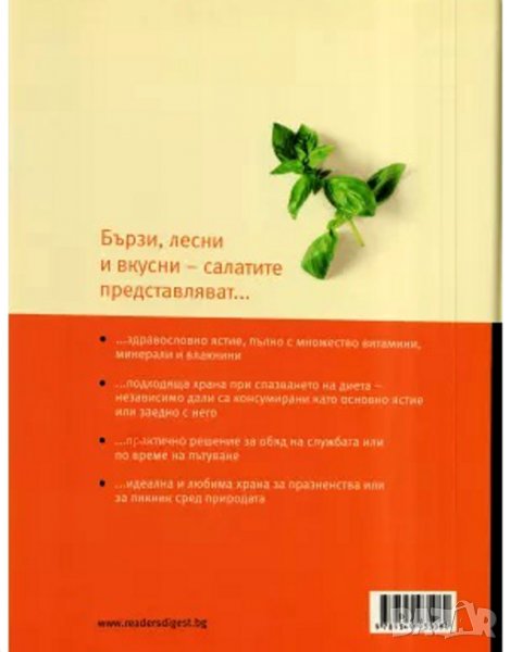 джоб и всеки повод. Освен рецептите за листни салати ви очакват истински "шедьоври" от сурови и задушени зеленчуци, салати с макарони, с ориз, с месо и птици, с риба, миди и скариди и естествено плодови салати. Накратко: има за всекиго по нещо.