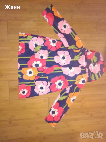 Тренчът е разкошен.Ползван,но без следи.Закопчава се с цип.С качулка и две джобчета отпред.Подплатата е памучна.Размерът му по етикет е 5-6,но според мен е уголемен.На снимката дъщеря ми е на 7 год.