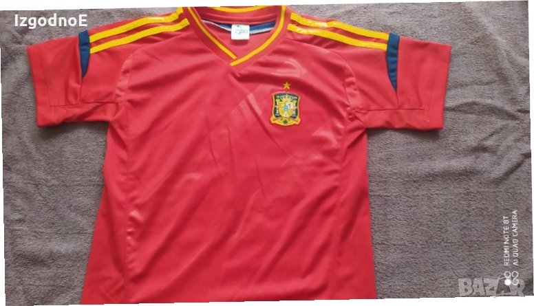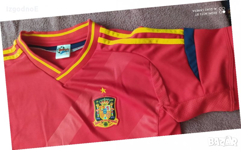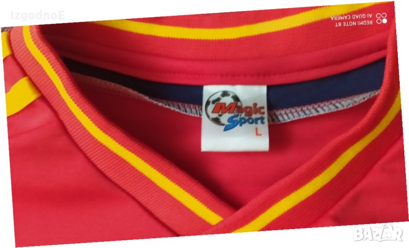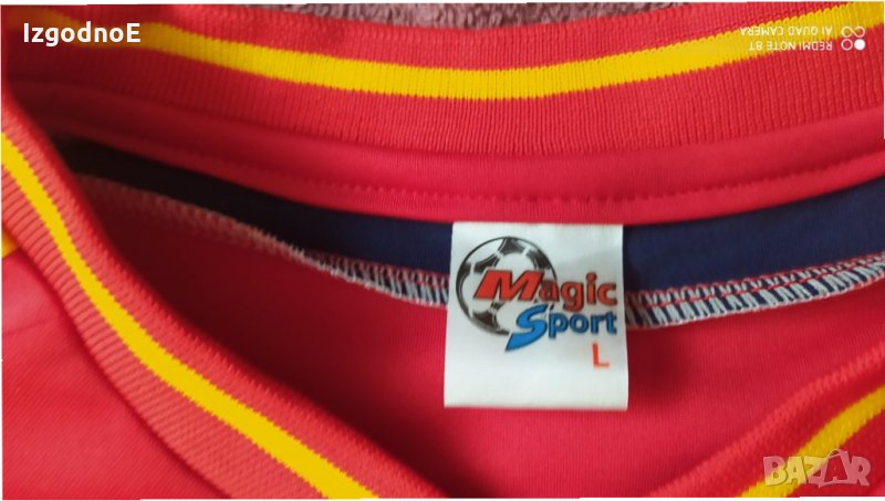 Тениската е донесена от Англия, няма етикет, но не е носена. С колекцонерска цел е съхранявана, имам и други в обявите. Размер ХЛ по етикет, но това е детска номерация. Има см на снимките, преценете си, според мен за около 9-10 години, но си зависи и от детето