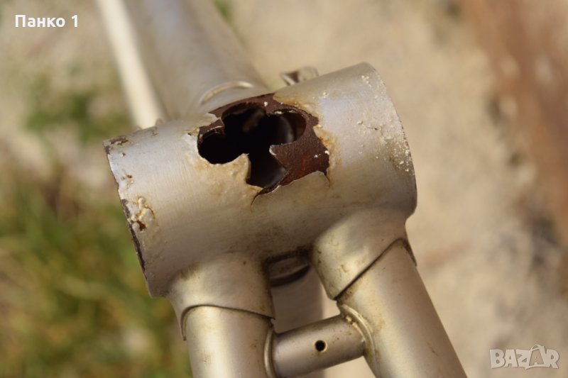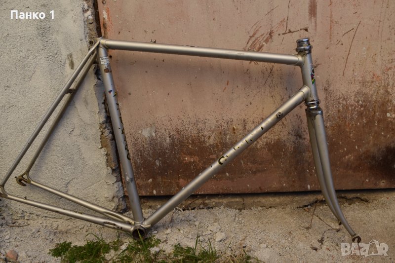 Марката Colnago няма нужда от представяне, но все пак искам да напиша 2 думи за модела "Super" - една от най-емблематичните шосейни състезателни рамки правени за всички времена, като нещото което отличива тази рамка от други модели през същите години(модела е първо произведен 68ма година) е компактната геометрия. Тази рамка е производство от средата/края на 70те, размер 53см. вертикална и 54см. хоризонтална тръба, като по рамката и вилката няма никакви ремонти или нередности. Боята е в прилично състояние, като в голяма част е много запазена, но не липсва патина и забележки по нея(опитал съм се да заснема всички забележки).В комплекта са включени чашки Hatta Swan. Рамката ще има нужда от средно вижение тип "Италиански стандарт" и колче за седалка 27.0мм.