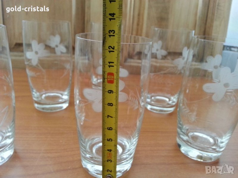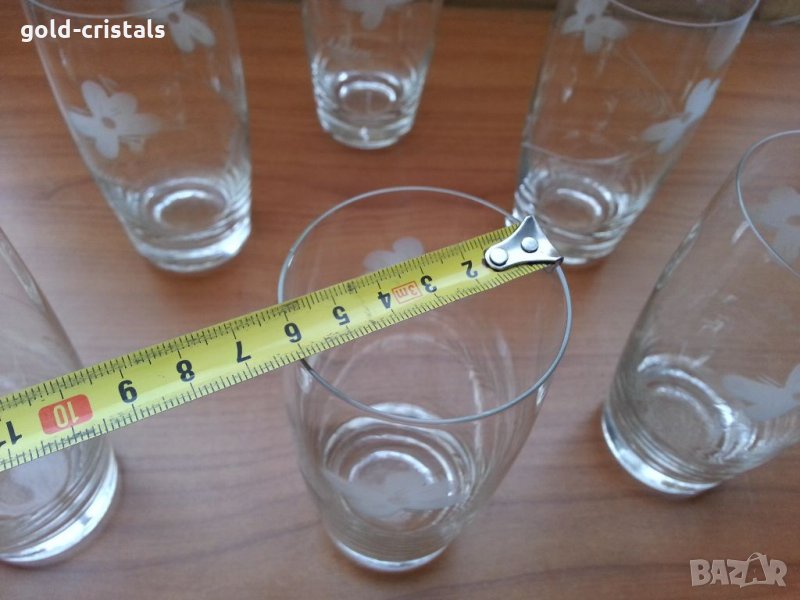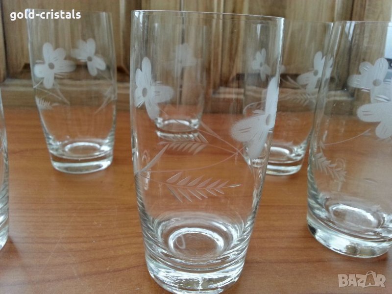 Ретро стъклени водни чаши гравирани 6бр-50лв налични два комплекта тънкостенни стъкло сервиз комплект сет лот ретро арт декор винтидж колекция старинни антикварни предмети обзавеждане за дома и семейството подходящи за подарък за ценители и колекционери