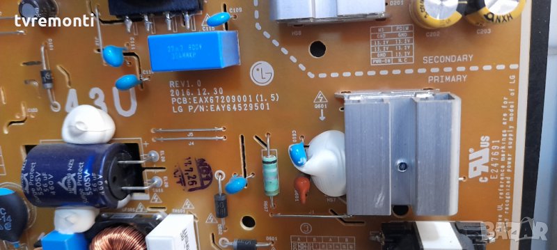 POWER BOARD ,LGP43DJ-17U1,EAX67209001(1.5),EAY64529501, for ,LG ,43UJ635V Борда е гарантирано работещ Демонтиран от телевизор LG ,43UJ635V със счупен дисплей Hc430DGG-SLTL1-A11X