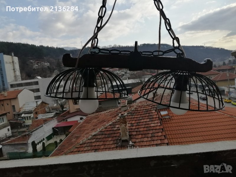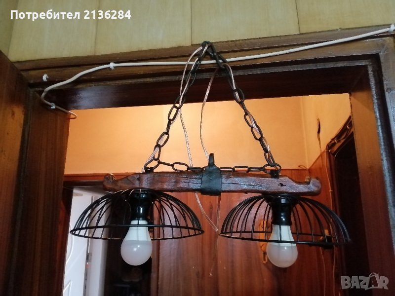 Ръчно изработен полилей от стара"Гермя". Синджирът е стабилизиран със скоби, фасунги, лед крушки, цена-135,00лв. Уникален и единствен.