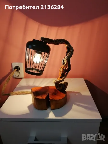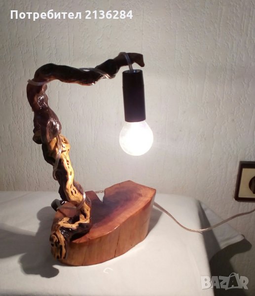 Ръчно изработена настолна лампа. Основата е черница, клон от лоза. Височина - 31 см, дължина - 21 см, обикновенна крушка, мързелив ключ. Уникална и единствена.