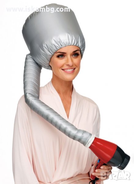 Ако някога сте си правили косата във фризьорския салон, знаете всичко за досадното седенето под качулатия сешоар-каска, познат още като капот. Наистина това съоръжение е много ефективно и върши добра работа по изсушаването на всяка отделна зона, дори и да сте с ролки и клипсове, но трябва да сте търпелива и да стоите почти неподвижно. Ето, сега се предлага едно много ефективно ново съоръжение, с което да направите своята прическа в домашни условия, като през това време може да се настаните удобно на дивана или креслото, да гледате телевизия или четете книга. Шапката с гъвкав шлаух се слага на главата, като от към тръбата се подава топлия въздух от сешоара. Освен предимствата, че ще си спестите време и средства (като не ходите до фризьорския салон), има и още едно предимство-сушенето на косата с тази шапка ще навреди много по-малко на здравината и блясъка на вашата коса, в сравнение с традиционния сешоар в салоните за красота.