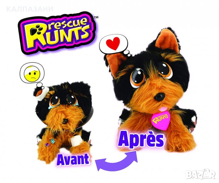 С плюшената играчка от Rescue Runts детето ще има прекрасен домашен любимец, който бързо ще се превърне в негов добър приятел. Срешете козинката на мъничето, избършете сълзичките му и ще видите как то се превръща в едно истински щастливо животинче. С играчката хлапето ще се научи да полага грижи и да носи отговорност за друго същество. Животинчето пък ще се превърне във верен другар в приключенията и игрите.
