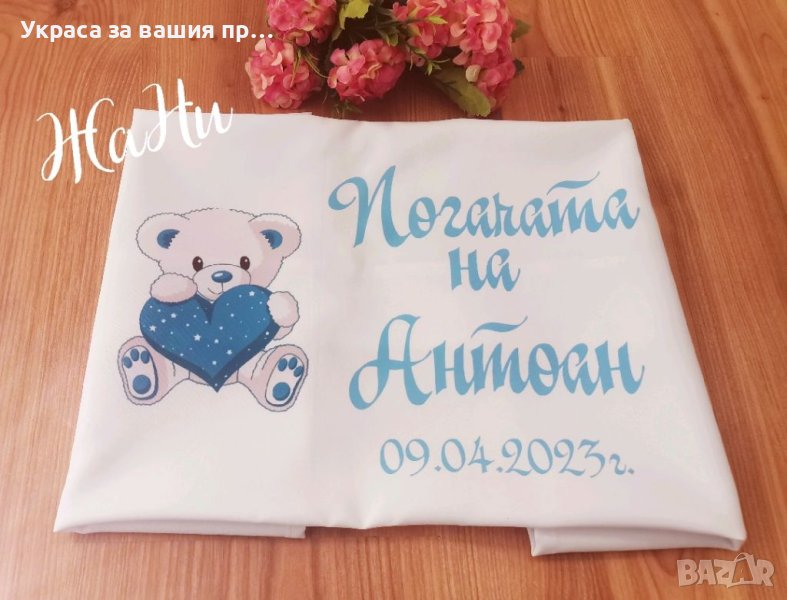 Месал за разчупване на питката с името на детето и датата на празника за бебешка погача → Обява 33570436
