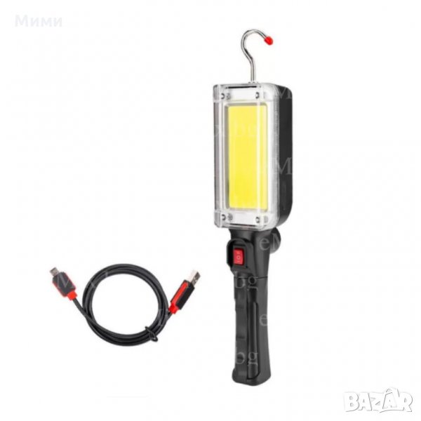 Преносима COB LED лампа с акумулаторна батерия, удобна кука за закачане и магнит.