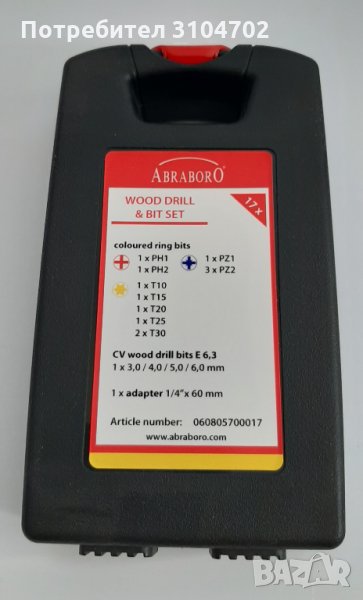Комплект свредла и накрайници Abraboro 17 части → Обява 33572763