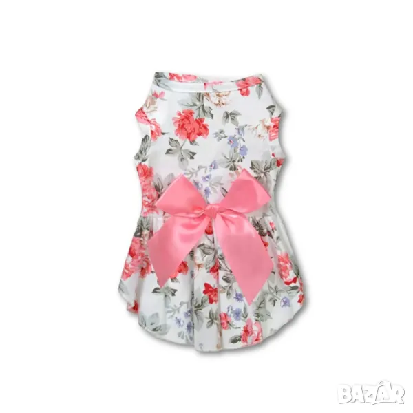 Бяла и синя рокля с розова панделка, за куче и котка.