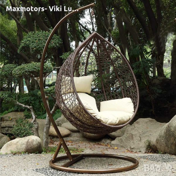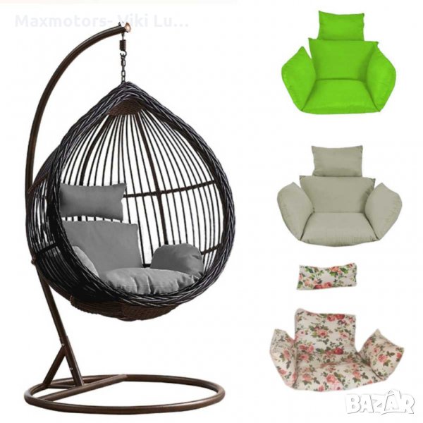 Люлка метална,Ратанова оплетка в бяло. Възглавници на цветя. Тип яйце → Обява 33578104