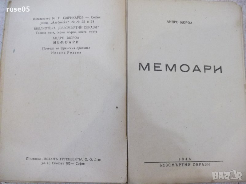 Книга "Мемоари - Андре Мороа" - 334 стр. → Обява 33579013
