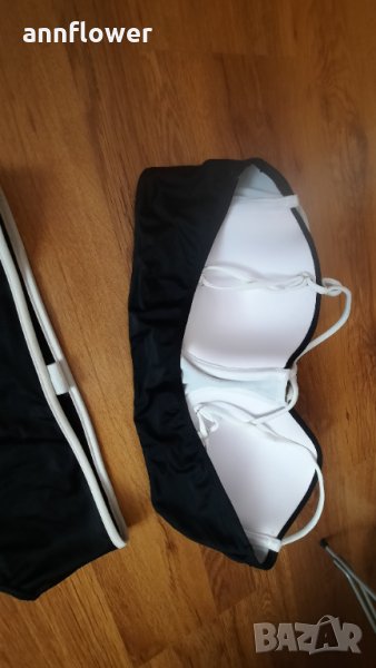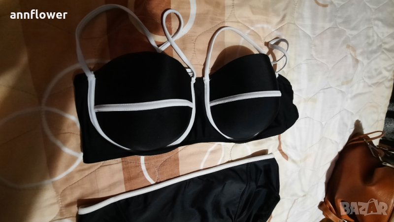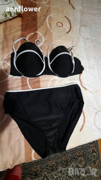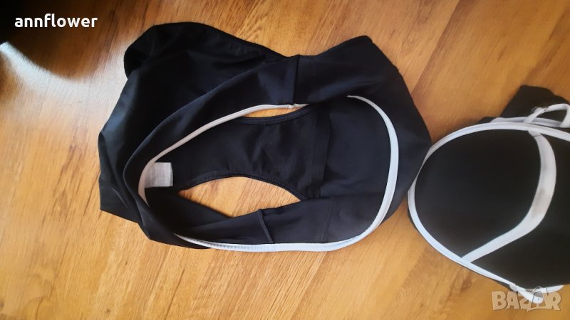 Банския е в отлично състояние. Цветове черно с бели кантове Долнището е 48размер. Горнището 90С-Е