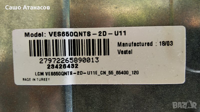 TOSHIBA 65U6763DG със счупена матрица ,17IPS55 ,17MB120 ,15Y_65_FU11BPCMTA4V0.4 ,VES650QNTS-2D-U11