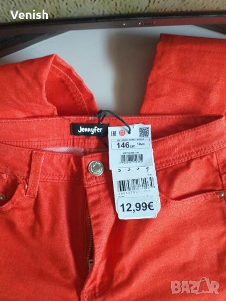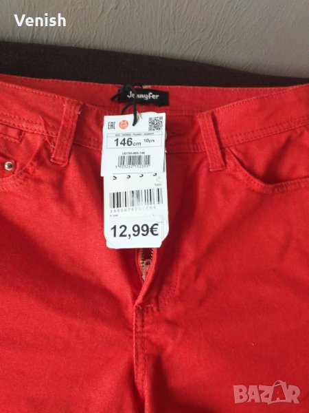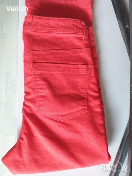Червен панталон с висока талия за 10-12 г. момиче, има еластичност и малки цепки отстрани на крачолите. .Реалния цвят е на снимката където е сгънат.