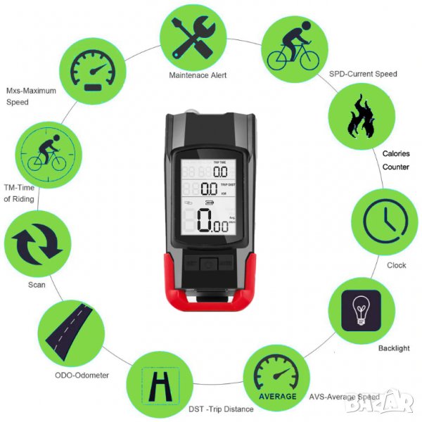 3в1 USB презареждаем фар за колело, акумулаторен, компютър, клаксон километраж светлини за велосипед