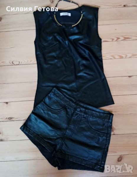 Комплект кожени къси панталонки Divided by H&M р-р 36 / S и кожен потник Giorgia с еластичен мрежест гръб без р-р отговаря на S/M нов, купуван с тенденция да вляза във форма - 50лв.