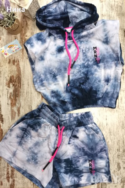 Модерен, смел, удобен... В супер цветове. Комплектът е от 2 части. Къси панталонки с връзки и суичър с качулка, без ръкав. Размери: 134 см, 146 см и 152 см 🛍️ За още моделчета разгледайте и останалите обяви в профила ми.
