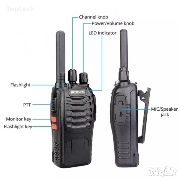 Комплект от 10бр. радиостанции Baofeng BF-888S с обхват до 10км. Независимо дали сте на лов, риболов, за офрана с този уред ще имате винаги връзка.Поддържа високи честоти с 16 канала, които се сменят посредством копчето до антената. За допълнителна помощ радиостанцията е оборудвана с фенерче. Компактните размери я правят удобна за носене дори в джоб.Диапазона на честотите е от 400 до 470mHz и благодарение на това лесно се преодоляват препядствия като стени, гористи местности и различни терени.Радиостанциите са изработени от здрава пластмаса, която предпазва вътрешността от удари, вода и замърсяване,