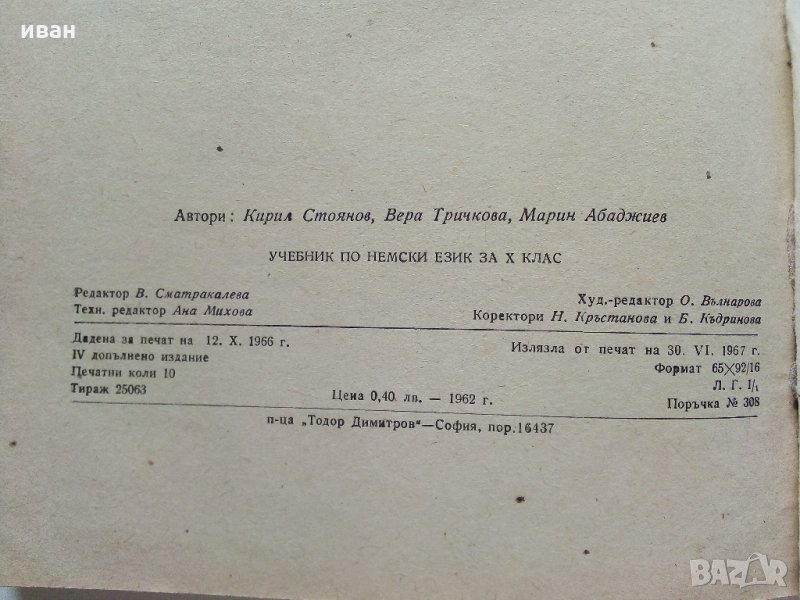Deutsches lehrbuch für die 10. klasse - К.Стоянов,В.Тричкова,М.Абаджиев - 1967 г. → Обява 33613608