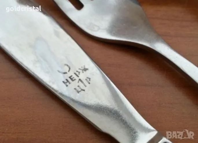 Руски прибори за хранене вилици и ножове неръждаеми маркирани двустранно гравирани сервиз комплект сет лот ретро арт декор винтидж колекция стари съветски СССР антикварни предмети обзавеждане за дома и семейството подходящи за подарък за ценители и колекционери