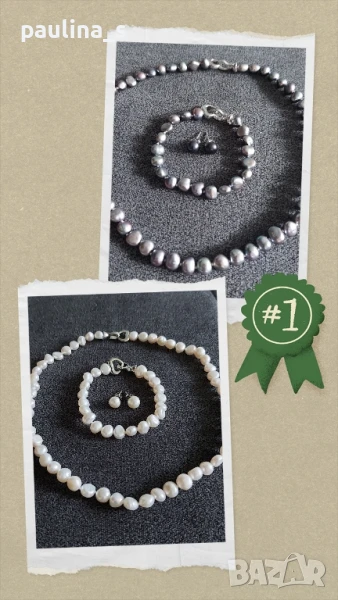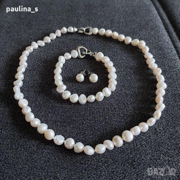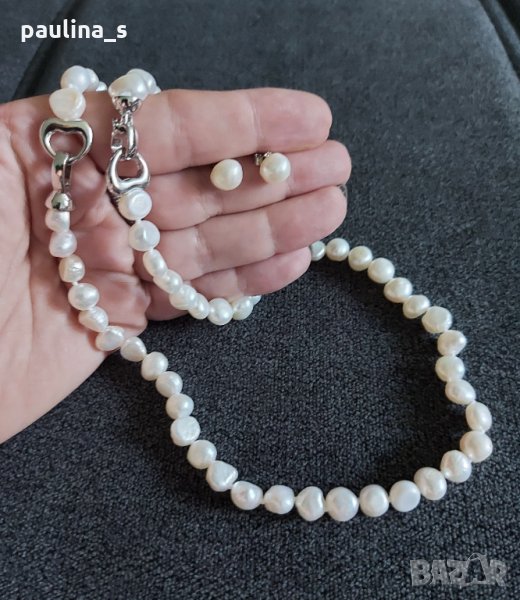 1️⃣. Зашеметяващ комплект от естествени бели барокови перли с посребрени закопчалки, сърца. Цената е крайна 144,99лв / 72 евро.