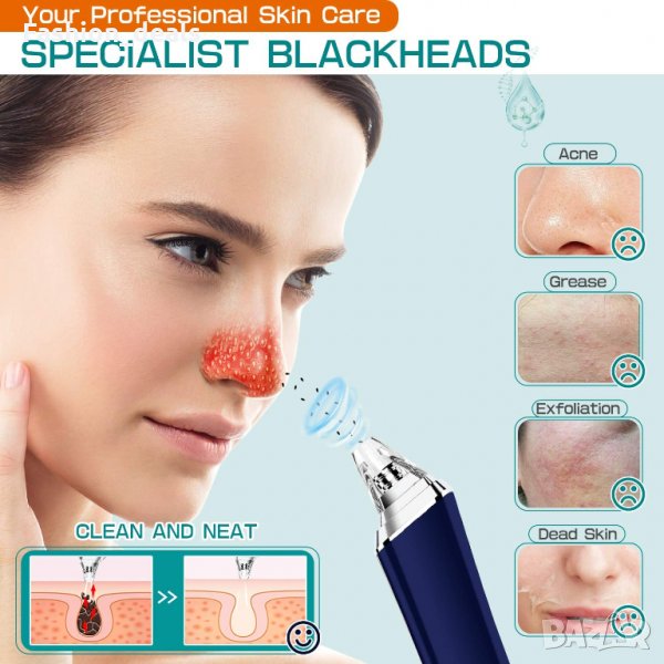 Този вакуум почистващ уред ви помага лесно да премахнете упоритите черни точки,мъртвите клетки на кожата, мръсотията, остатъците от масло и грим и и ще направи лицето ви гладко и меко.