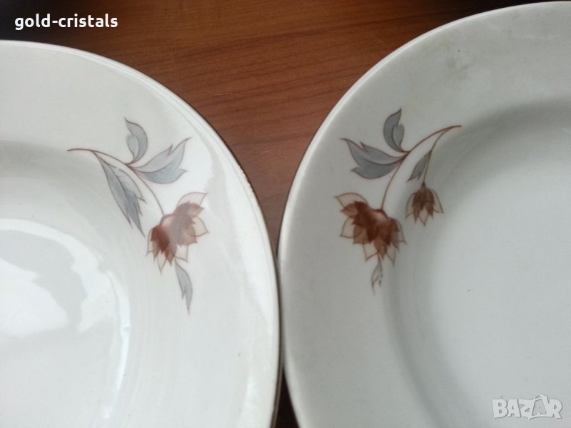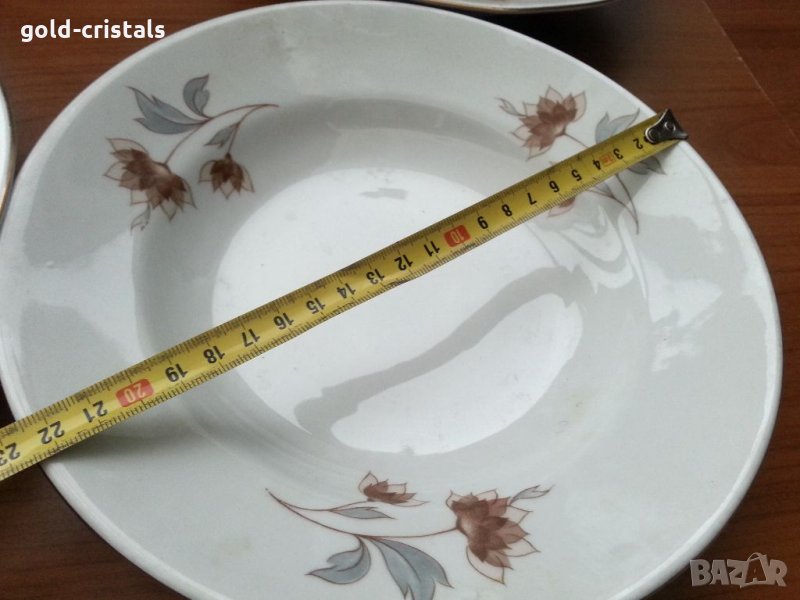 Стар български порцелан чинии дълбоки златен кант 5бр -15лв едната е с малка разлика с следи от ползване на прибори без чукнато или пукнато сервиз комплект сет лот ретро арт декор винтидж колекция стари за основно 6бр -35лв дълбоки 6бр-30лв без забележки златен кант