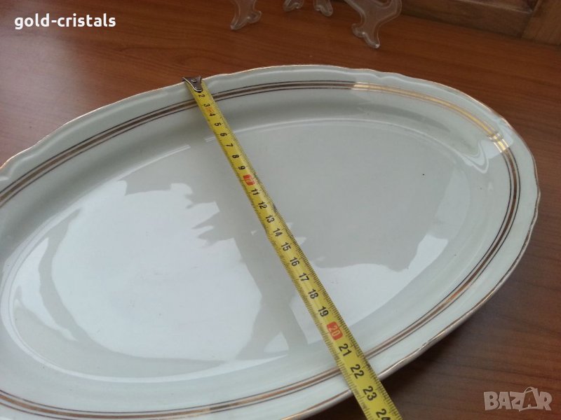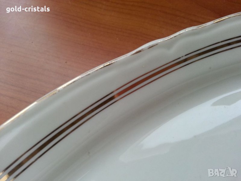 Стар български порцелан плато елипса златен кант ретро арт декор винтидж колекция стари антикварни предмети обзавеждане за дома и семейството подходяща за подарък за ценители и колекционери