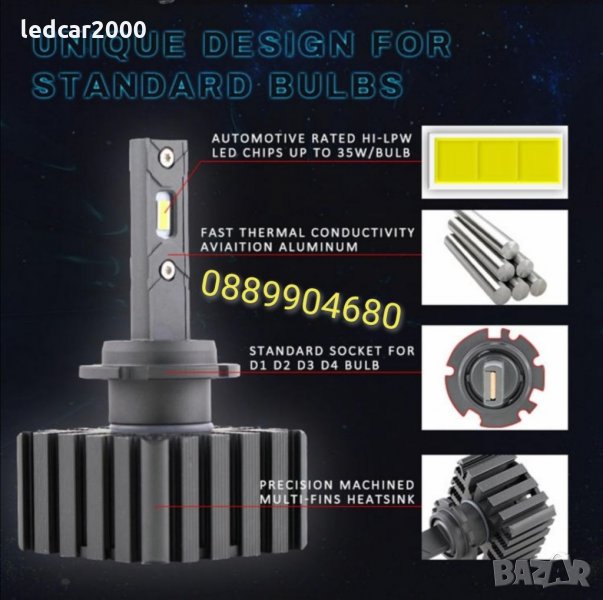 Лед крушки създадени да заместват изцяло оригиналните крушки на автомобили със заводски ксенон. Тези крушки са специално създадени да заместят ксенонова крушка със повредена баласт (запалка). Тези лед крушки прескачат така наречената "запалка" и работят с директо захранване преди баласт (запалката). Крушките са перфектен заместител в случай на изгорели баласти и същите са много скъпи за замяна.За подмяната на лед крушата не се изискват някакви специални познания от факта, че лед крушата по форма и размери е точно копие на оригиналната ксенонннова крушка и това прави подмяната изключително лесна. Крушките са снабдени със възможно най новият лед чип до момента. Същите разполагат със технология да не смущават радиото и да не дават грешка за изгоряла крушка. Много е важно да погледнете снимките от обявата за кои тип букси са подходящи. Моля свържете се с нас ако имате нужда от консултация. Ние сме на среща за всеки един ваш въпрос.
