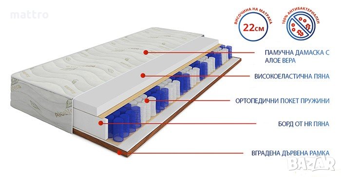 (-50%) Еднолицев матрак Еуфория Покет с безплатна доставка до всички села и градове